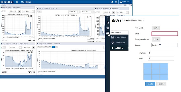 我们的portal用户可以创建无数个控制台。用户可自行设计自己的水文控制台,就像创建音乐播放列表一样容易。用户可任意添加地表水、地下水、水质或者气象的地图及图表。我们的控制台能够帮助您灵活地配置个性化信息产品显示页。
