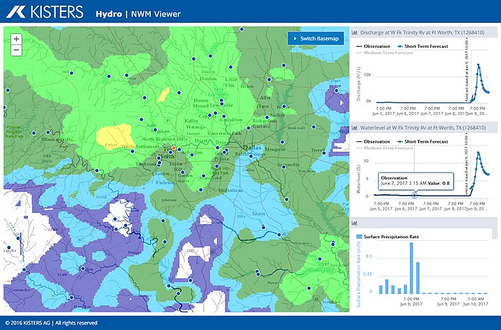 一副好的地图胜过千言万语。我们的数据可视化经验是KISTERS Water Portal不可稀缺的元素。我们将所有的时间序列技术都融入地图中, 您可以查看地图上任意区域的数据并对其进行分析。当您在地图上选中一个多边形区域、某个定位点或者网格化数据时,地图上就会跳出高度复杂的时序表。你可以从esri 地图、google地图或者由开源社区提供的免费地图中随意挑选地图。